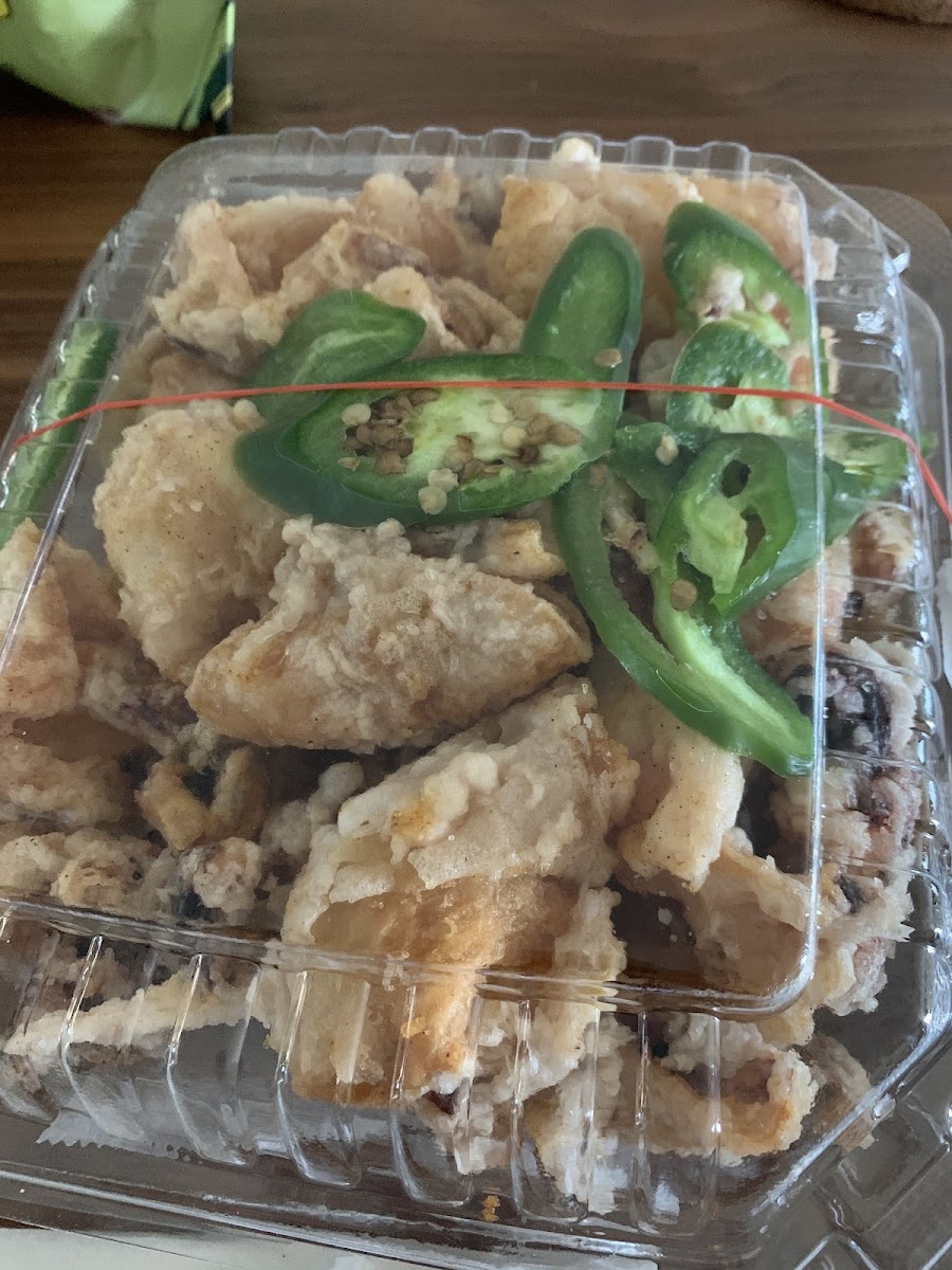I always order the single size which is the size of a togo styrofoam box for $16.99 whenever I am in town. It's very crispy and still crispy when I get home and even after a few days in the fridge. It goes well with vinegar. It's very addicting.